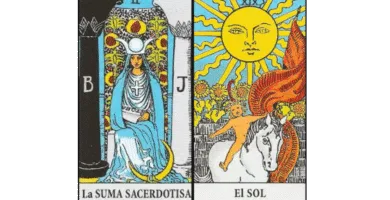 Descubre el significado de la combinación de La Papisa y El Sol en el tarot y cómo influye en la salud, el amor, el trabajo, las finanzas y el crecimiento espiritual.