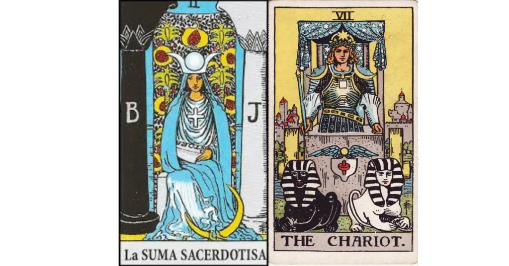 Significado de la combinación de La Papisa o Suma Sacerdotisa con El Carro en el Tarot