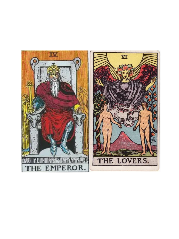 Espiritualmente, esta unión invita a armonizar la autoridad personal con la guía del corazón y las emociones. El Emperador representa la fuerza estructurada y el poder, mientras que Los Enamorados simbolizan el alma, las elecciones y el amor universal.