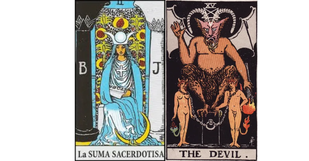 Significado de la combinación de La Papisa o Suma Sacerdotisa con El Diablo en el Tarot