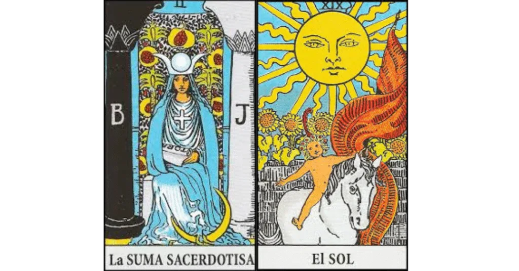 Significado de la combinación de La Papisa o Suma Sacerdotisa con El Sol en el Tarot