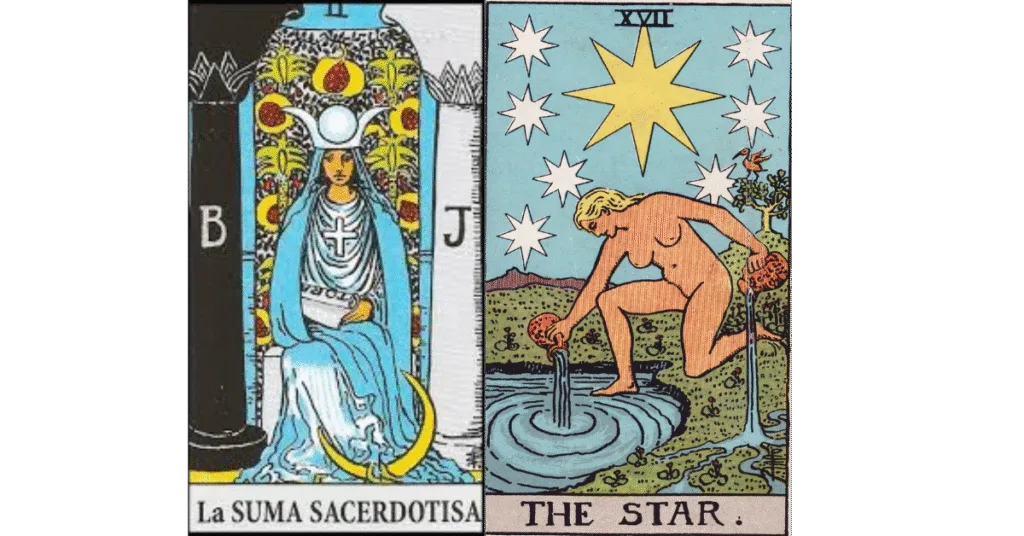 Significado de la combinación de La Papisa o Suma Sacerdotisa con La Estrella en el Tarot